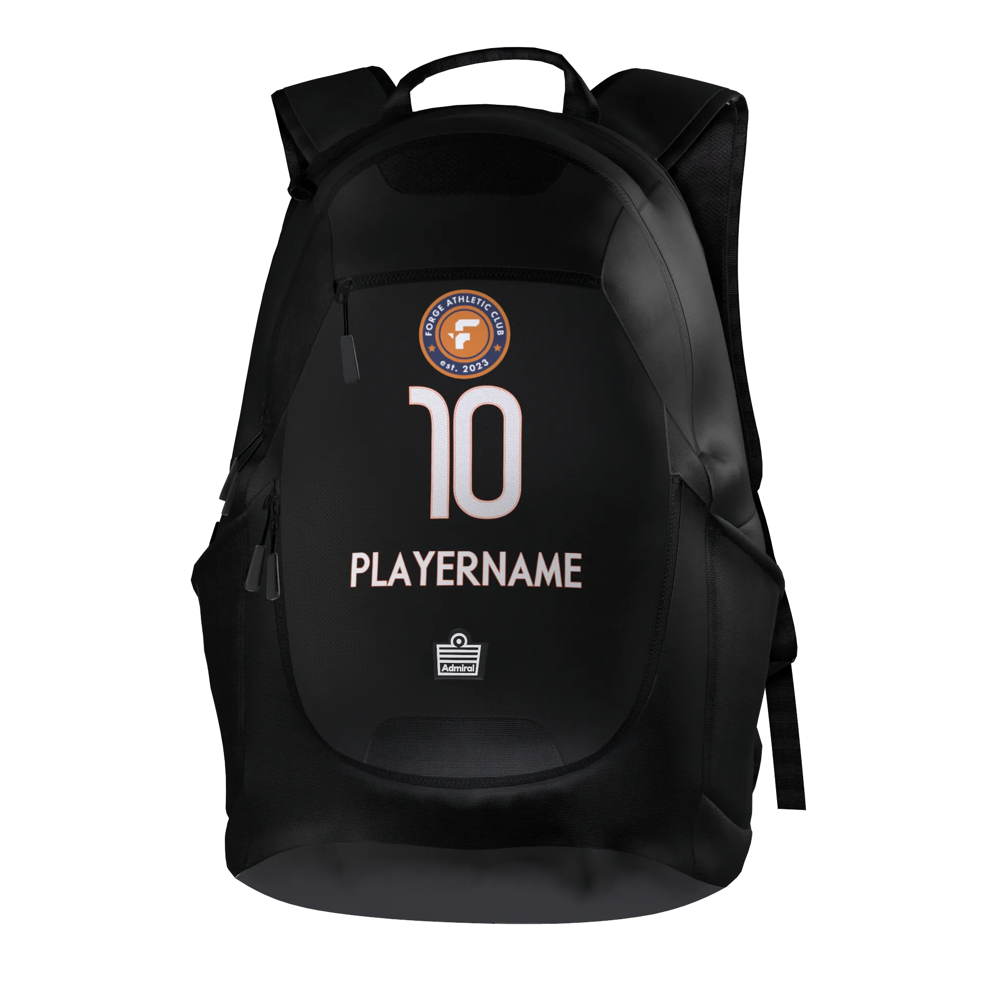 An upgraded athletes backpack. Features include: Dedicated shoe pocket, Water resistant base, Padded shoulder straps and back panels, Zippered interior, valuables and ball pockets as well as 2 exterior water bottle pockets. (20" X 13" X 7")